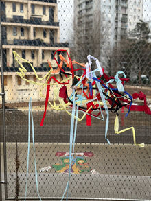En utilisant des textiles usagés, les enfants ont réalisé un grand tissage collectif sur les grilles de l’école et exploré d’autres créations. Ce projet a été l’occasion de sensibiliser au rôle de l’industrie textile dans le changement climatique et d’imaginer des solutions durables en redonnant vie aux matières.